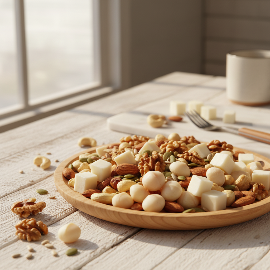 品名:plus綜合堅果 內含:杏仁果、腰果粒、核桃、夏威夷果、南瓜籽仁、葵瓜子仁、起司丁、杏仁條、維他命E(抗氧化劑) 產地::台灣 保存方式:請冷藏保存,開封後盡快食用完畢 重量:300克 保存期限:6個月
