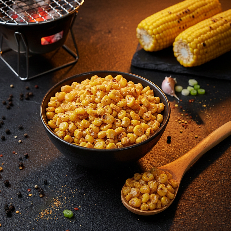 品名:玉米粒(炭烤風味) 成分:玉米(非基因改造)、糖、精緻棕櫚油、調味料(乳糖、香料、調味劑(L-麩酸鈉)、麥芽胡精、鹽、醬油、蒜頭、肉桂、調味劑(5'-次黃嘌呤核苷酸二鈉、5'-鳥嘌呤核苷酸二鈉)、 花椒、八角、丁香、品質改良劑(二氧化矽) 🔸本產品含有花生、奶類、蛋、堅果類、芝麻、含麩質之穀物、大豆及其製品,對此過敏者,請避免食用。