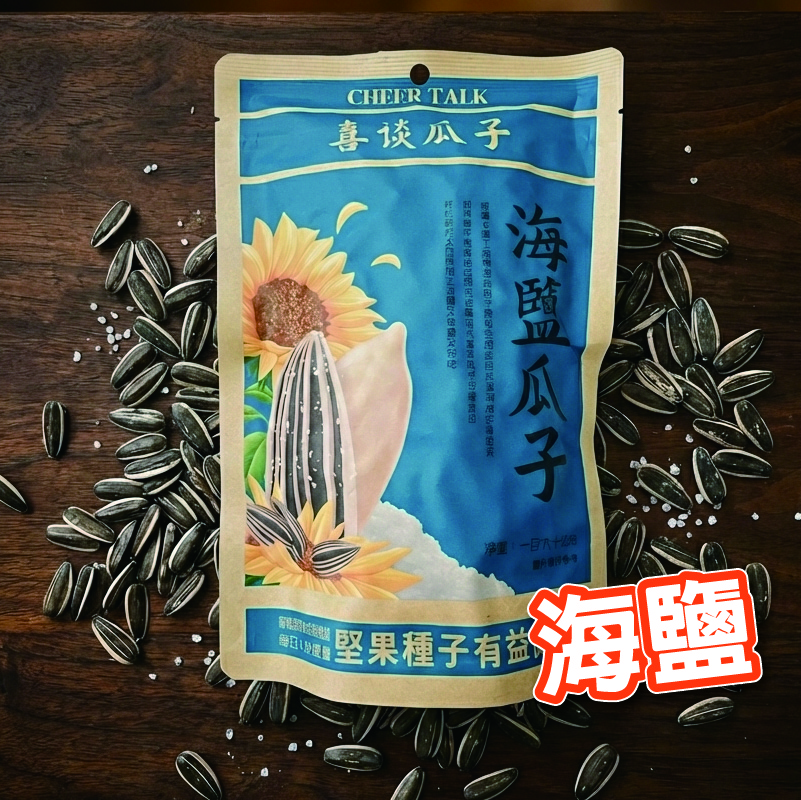 📌【喜談瓜子-海鹽味】 使用天然海鹽,風味清爽,比一般咸瓜子更溫和、香氣自然,不會過鹹。 ※瓜子外殼上的白色結晶,為獨特外包菓技術附著天然海鹽,請安心食用。 淨重:160g 產地:中國 保存期限:8 個月